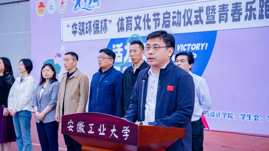 4月26日,我校2025年“华骐环保杯”体育文化节启动仪式暨青春乐跑活动在秀山校区田径场开幕。副校长郑啸出席,华骐环保股份有限公司相关负责人,学生工作部、安全保卫部、团委、体育部、工会负责人,各学院学生工作负责人、师生代表参加。